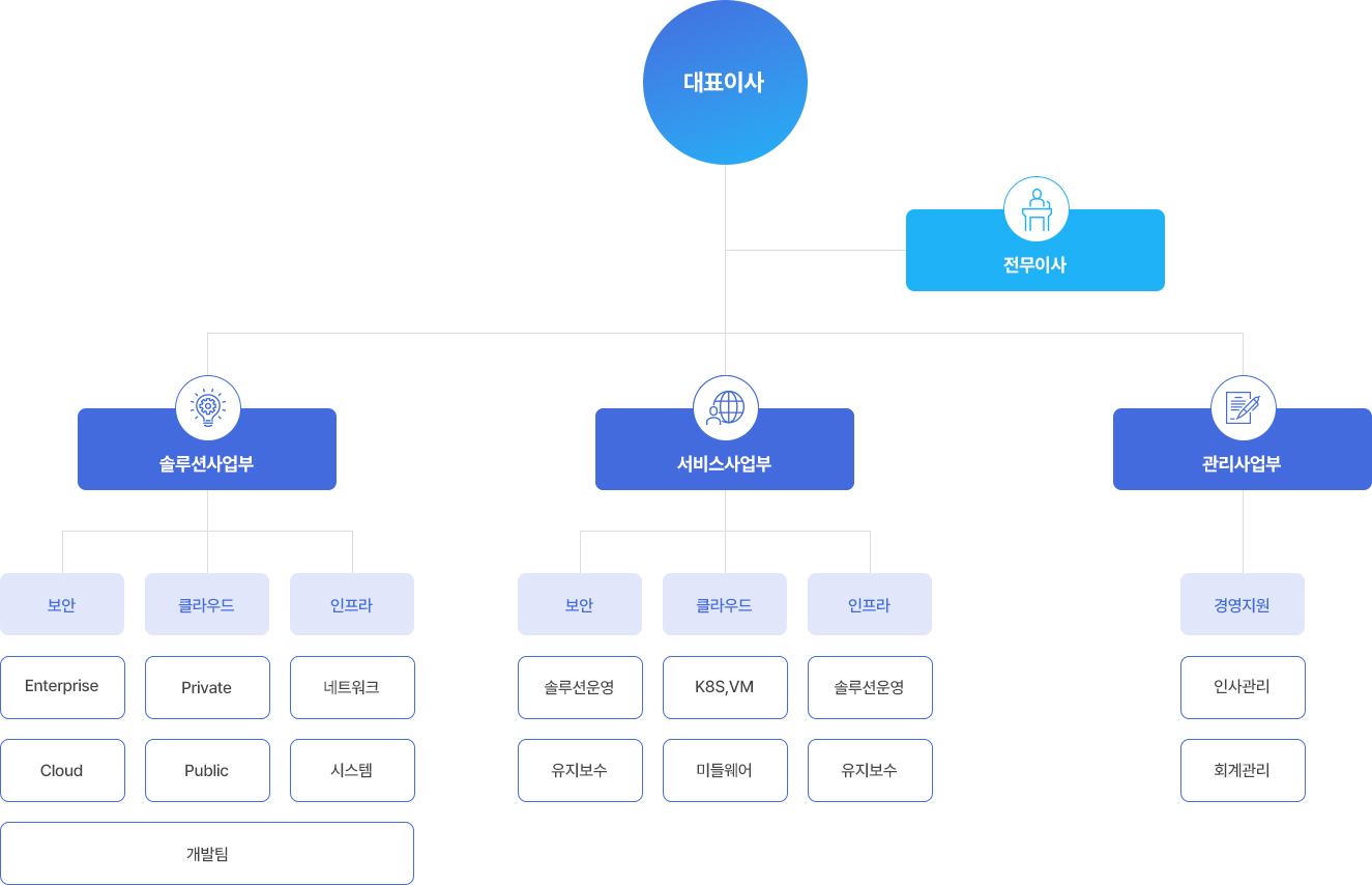 서비스 사업부는 고객에게 제공한 보안/클라우드 솔루션을 운영 유지보수하고 고객 요구 사항을 즉시 반영하도록 할 것입니다.